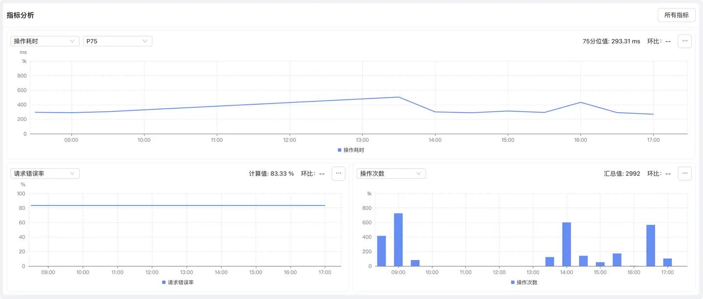 展示单个操作的性能指标时间趋势: