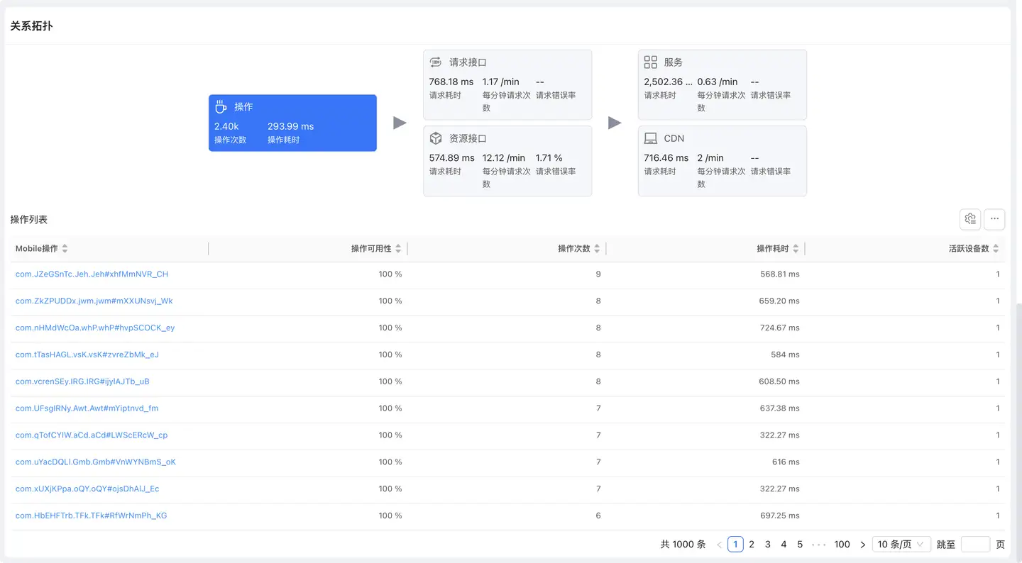 操作分析功能为产品和研发团队提供真实用户操作行为的性能监控和体验分析能力,帮助团队从用户视角发现性能瓶颈,优化交互体验。通过监控操作可用性、操作耗时、阻塞耗时等核心指标,结合完整的端到端链路追踪,支撑用户体验持续优化和问题快速定位。