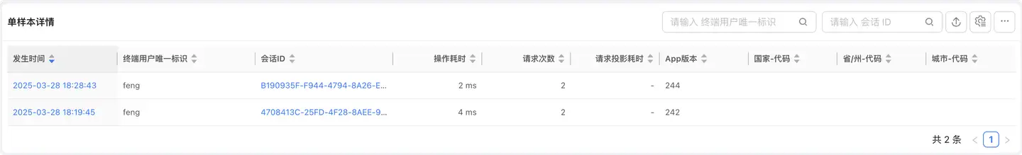 - 跳转:点击会话 ID 跳转到会话详情