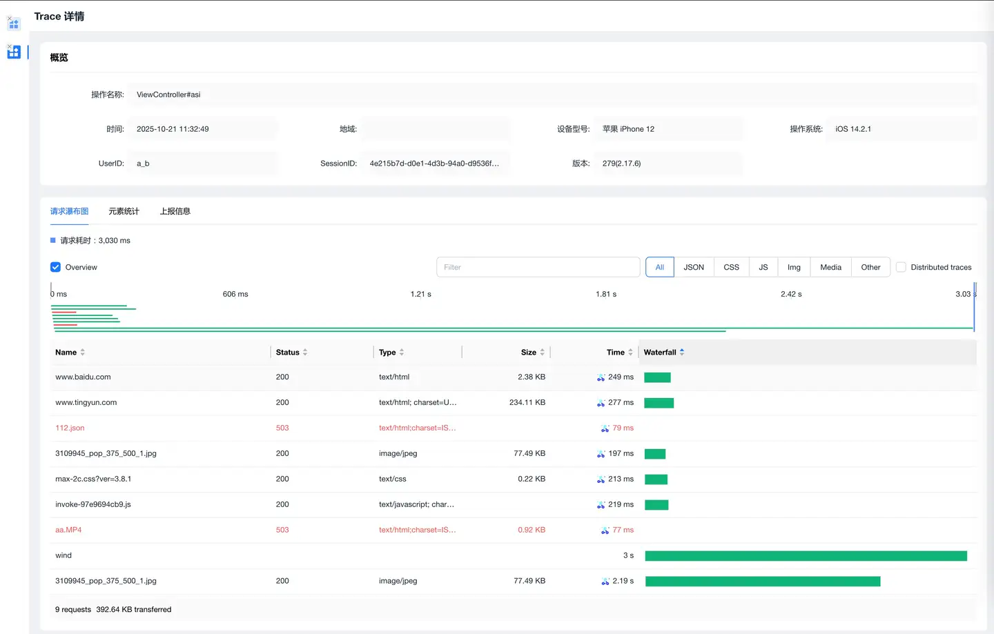 - 直观展示请求并发情况和耗时分布