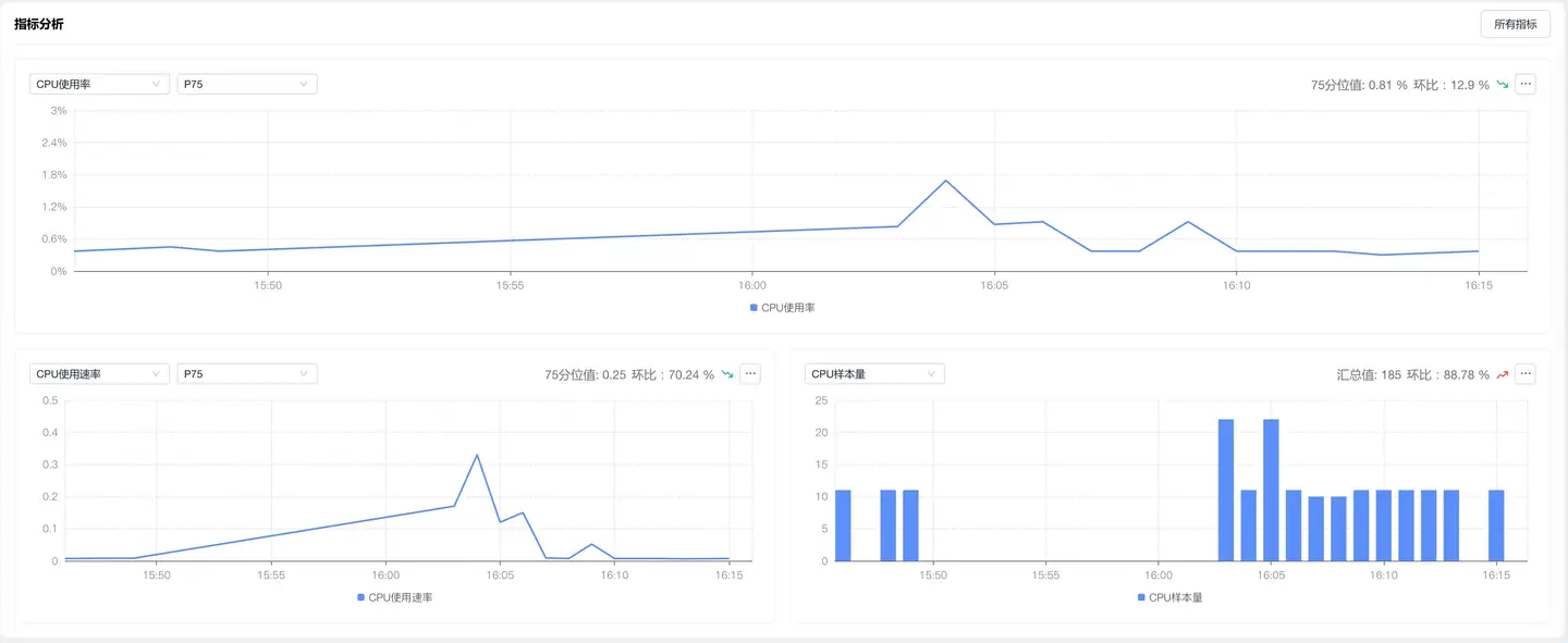 - 性能瓶颈识别:通过 CPU 使用率趋势和分位值分析,快速发现性能热点