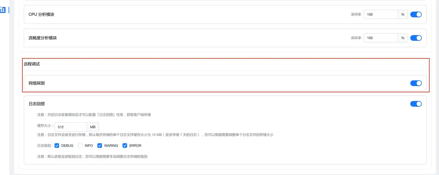 通过统一的调度中心,能够根据不同的任务类型来收集真实用户遇到问题时的实时数据,通过网络探测和日志回捞两种手段,协助研发、运维人员及时掌握第一手数据,提升排查效率。