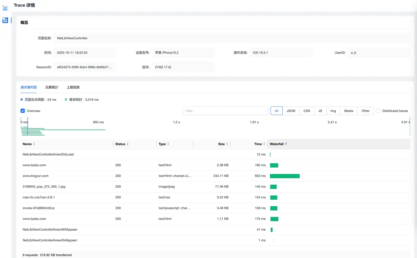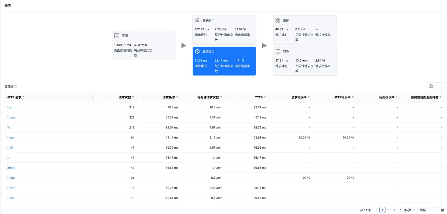 展示应用页面加载与后端服务的完整链路,帮助分析性能瓶颈。