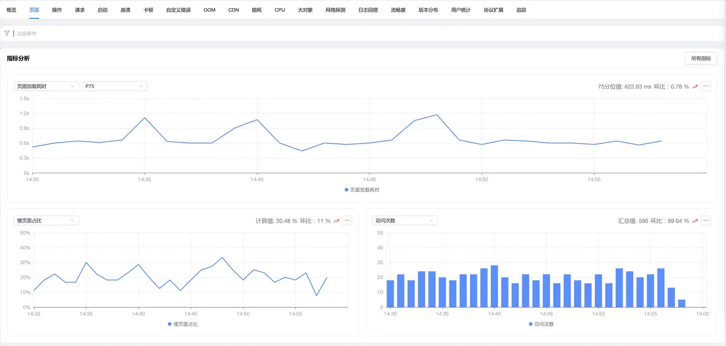 页面分析功能可以实时监测线上应用页面加载性能情况,帮助开发者快速定位问题并优化用户体验。