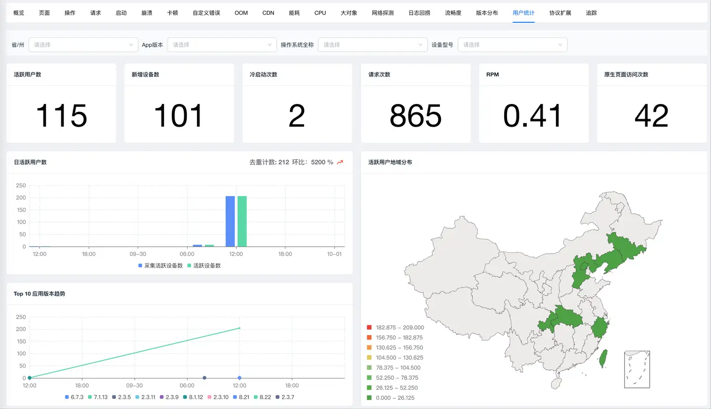 - 用户画像分析:了解用户的设备、系统、地域分布,优化产品适配
