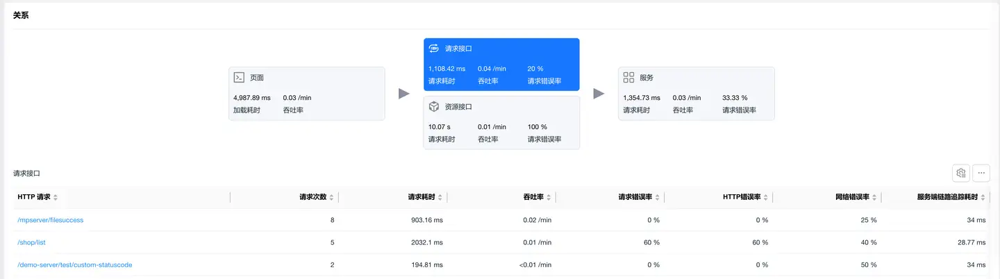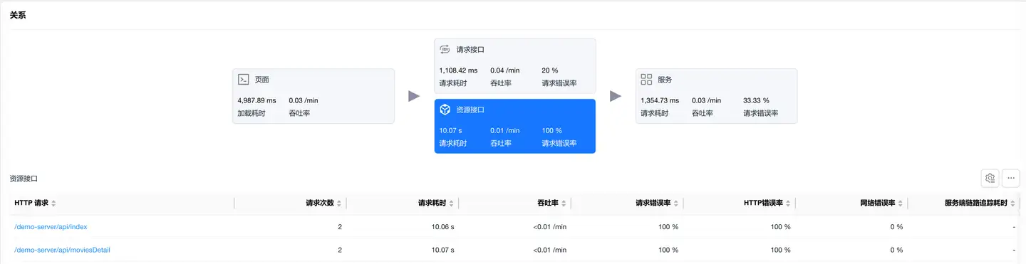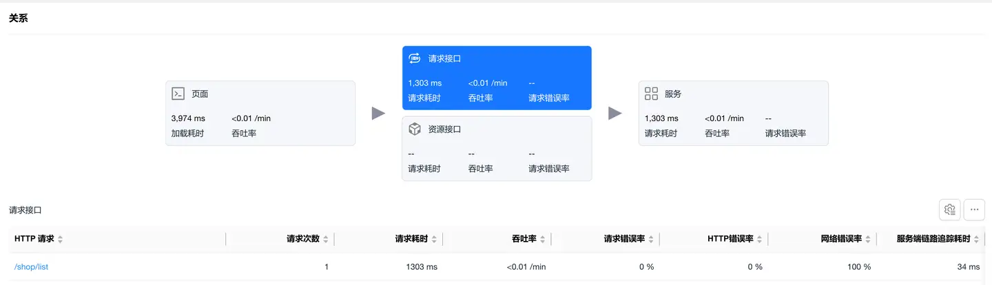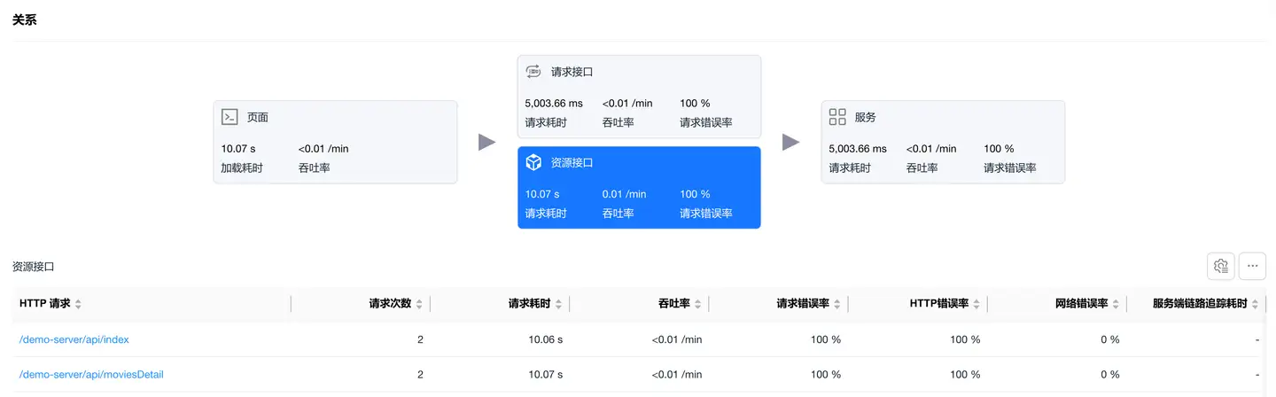 选中资源接口卡片,展示静态资源(图片、JS、CSS 等)的加载性能数据。