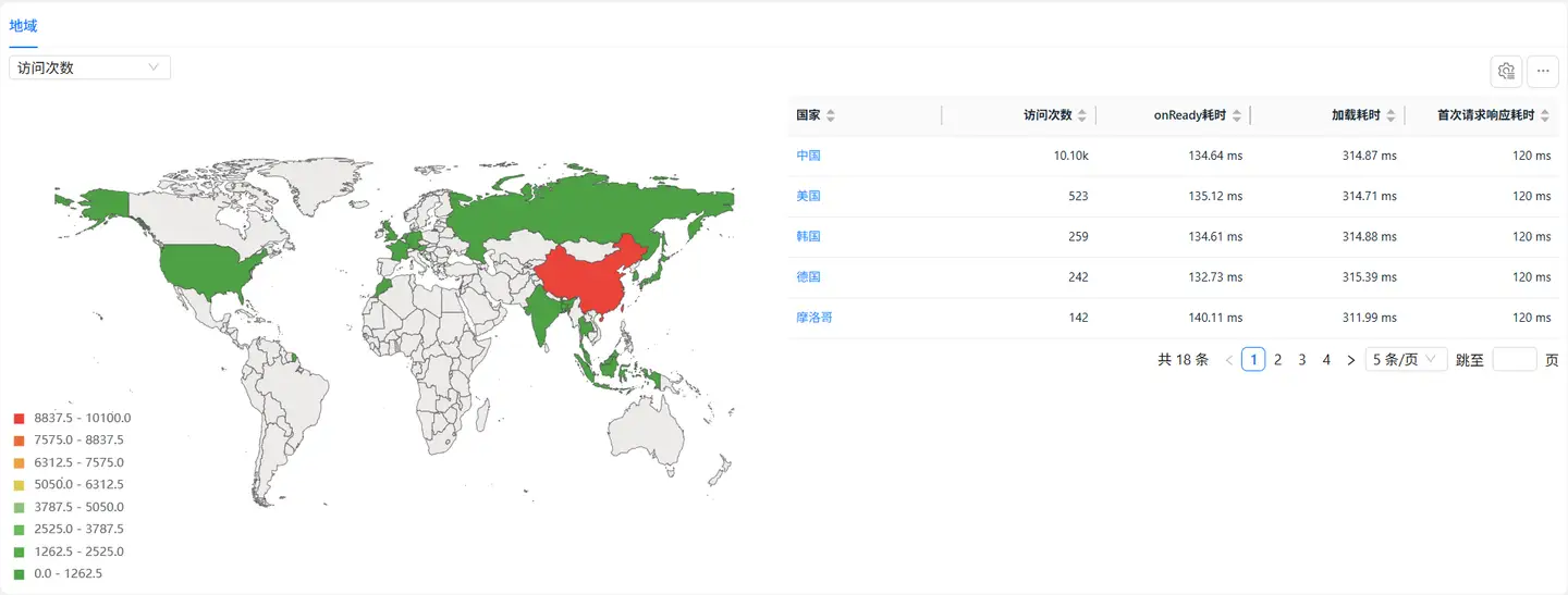 - 您可以在左侧筛选页面加载性能指标来分析其在不同地域的表现情况