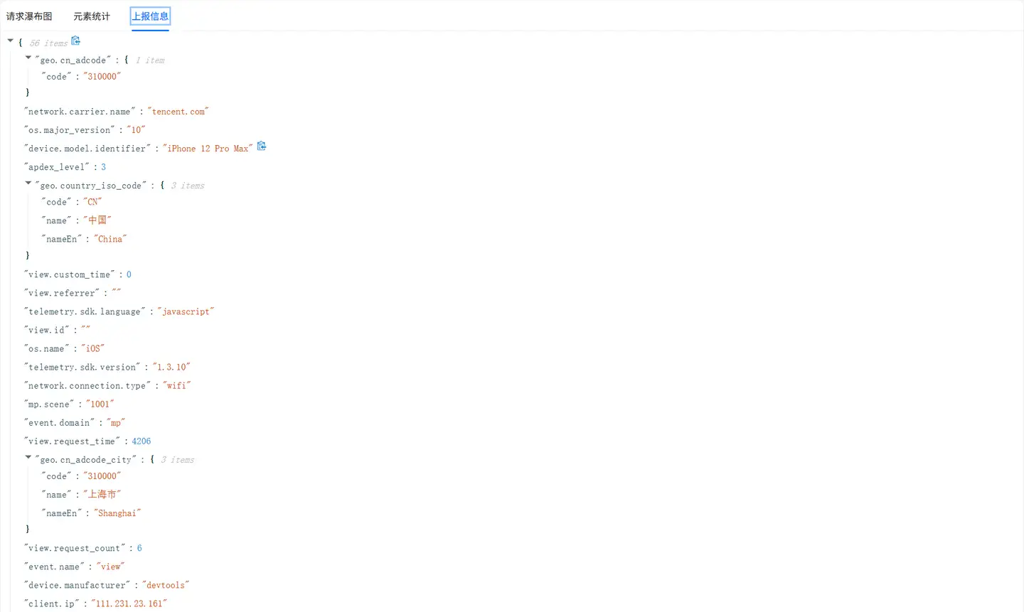 选中请求接口卡片,底部展示「mime-type 为 text 或 json」请求数据列表,列表展示数据包括: