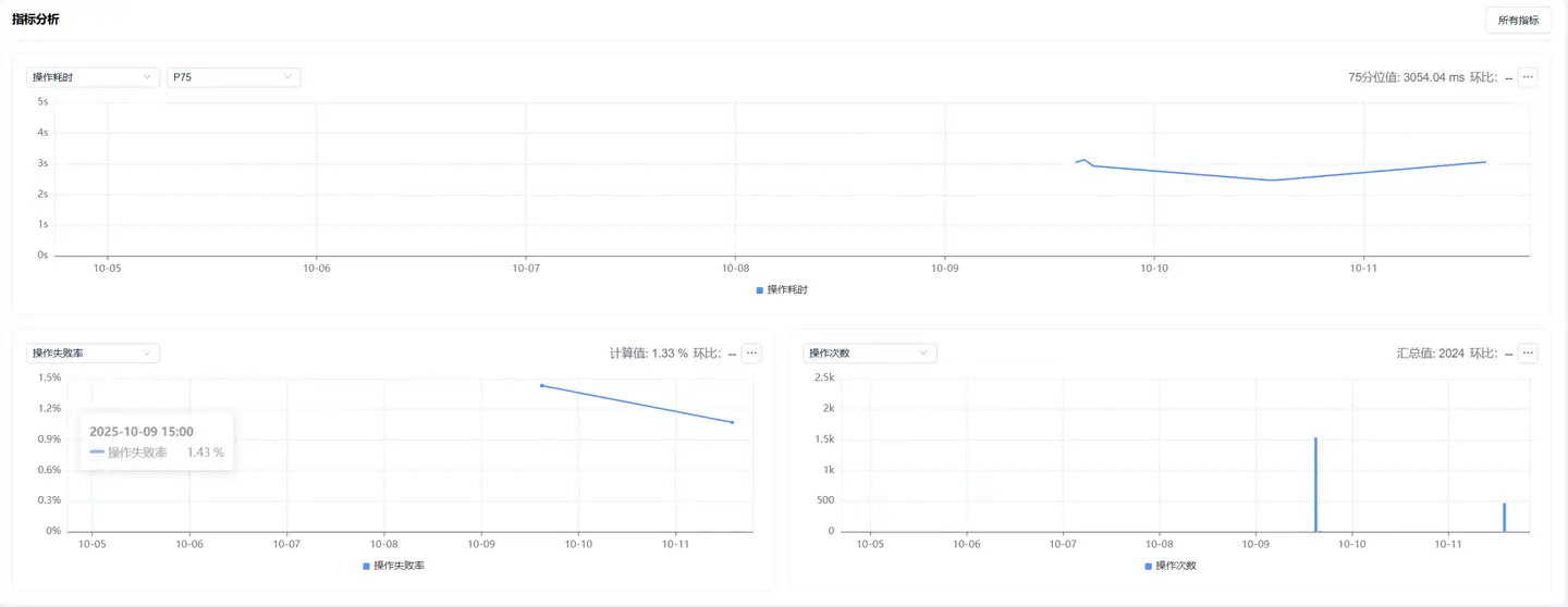 展示了过滤条件下操作性能指标的趋势图: