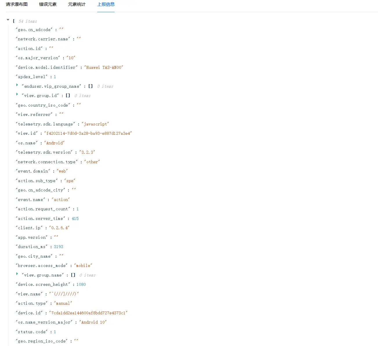 点击列表中的操作,进入到操作详情分析,详情分析展示了该操作的详情数据。