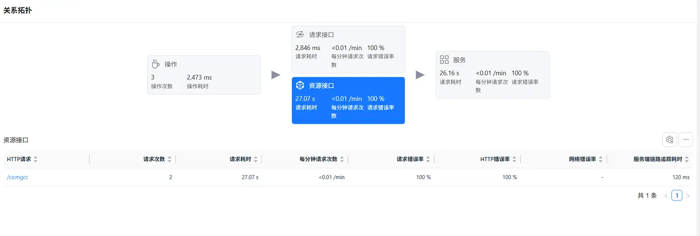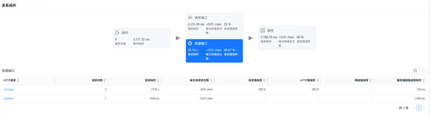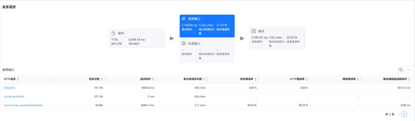选中资源接口卡片,底部展示资源请求数据列表,列表展示数据包括:
