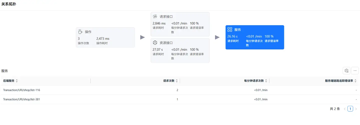 展示应用单一用户操作与后端服务的完整链路,帮助分析性能瓶颈。