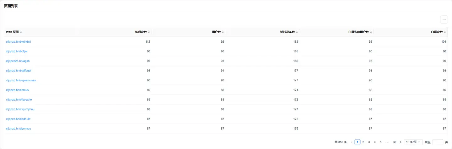 白屏分析数据展示示例: