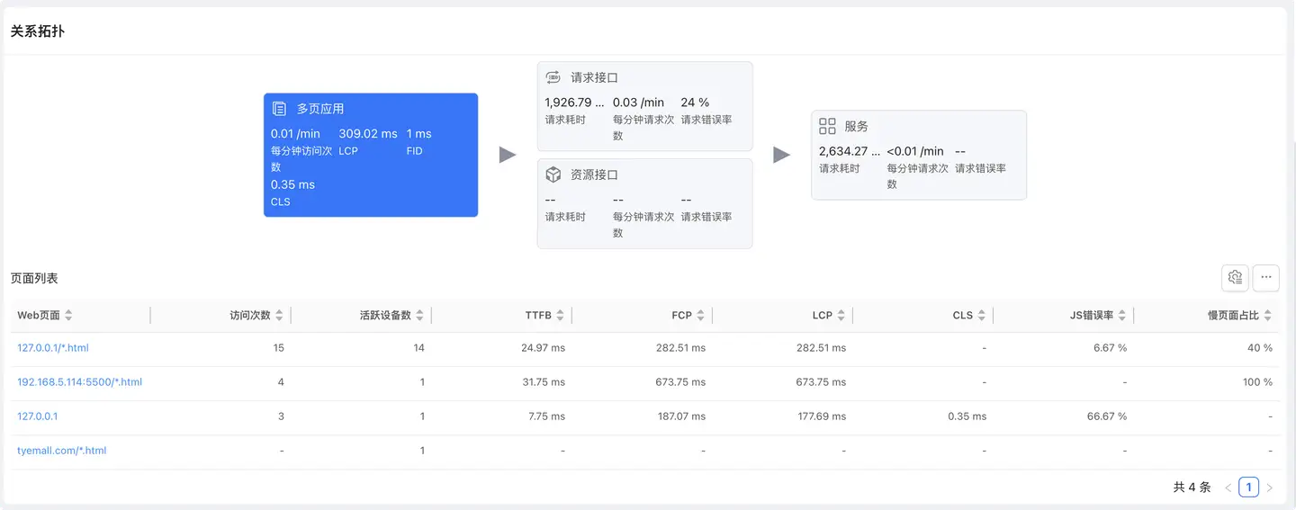 展示应用单一页面加载与后端服务的完整链路,帮助分析性能瓶颈。