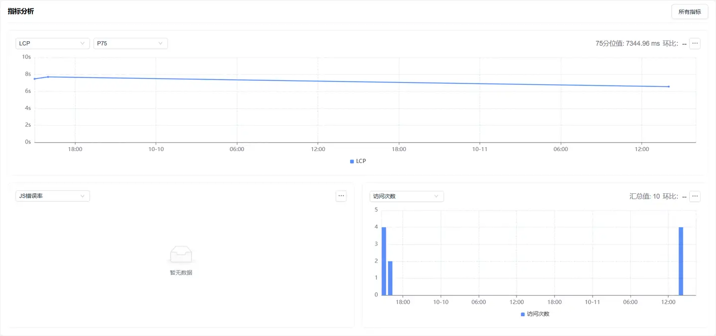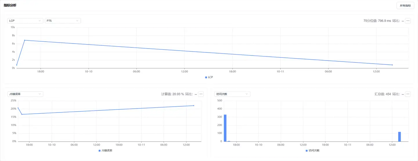 展示了过滤条件下页面加载性能指标的趋势图: