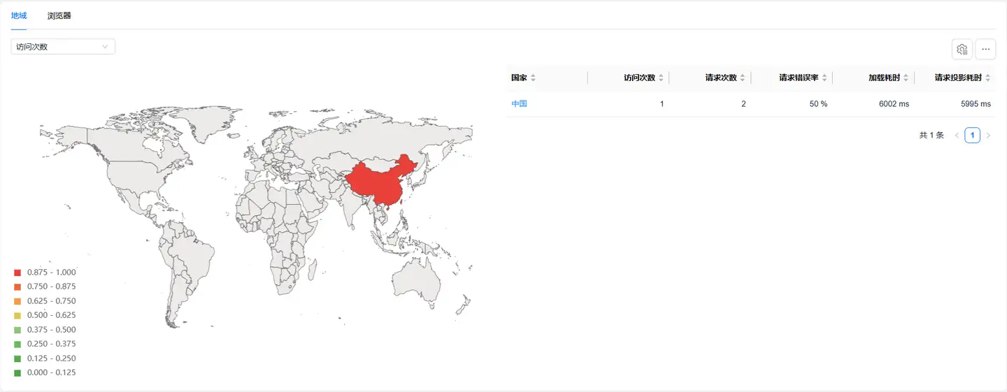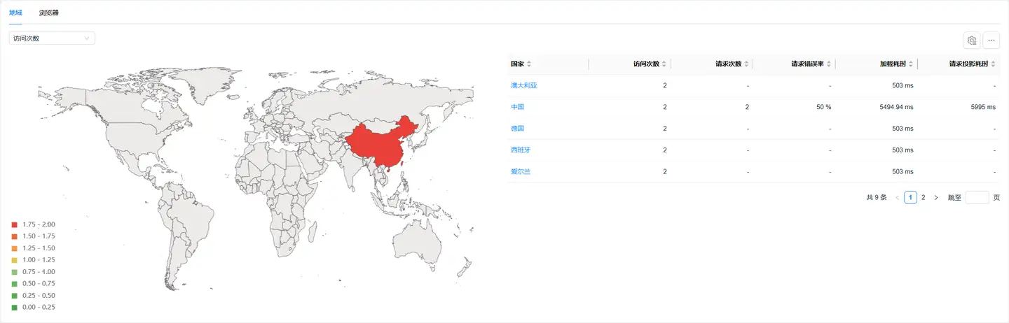 - 您可以在左侧筛选页面加载性能指标来分析其在不同地域的表现情况