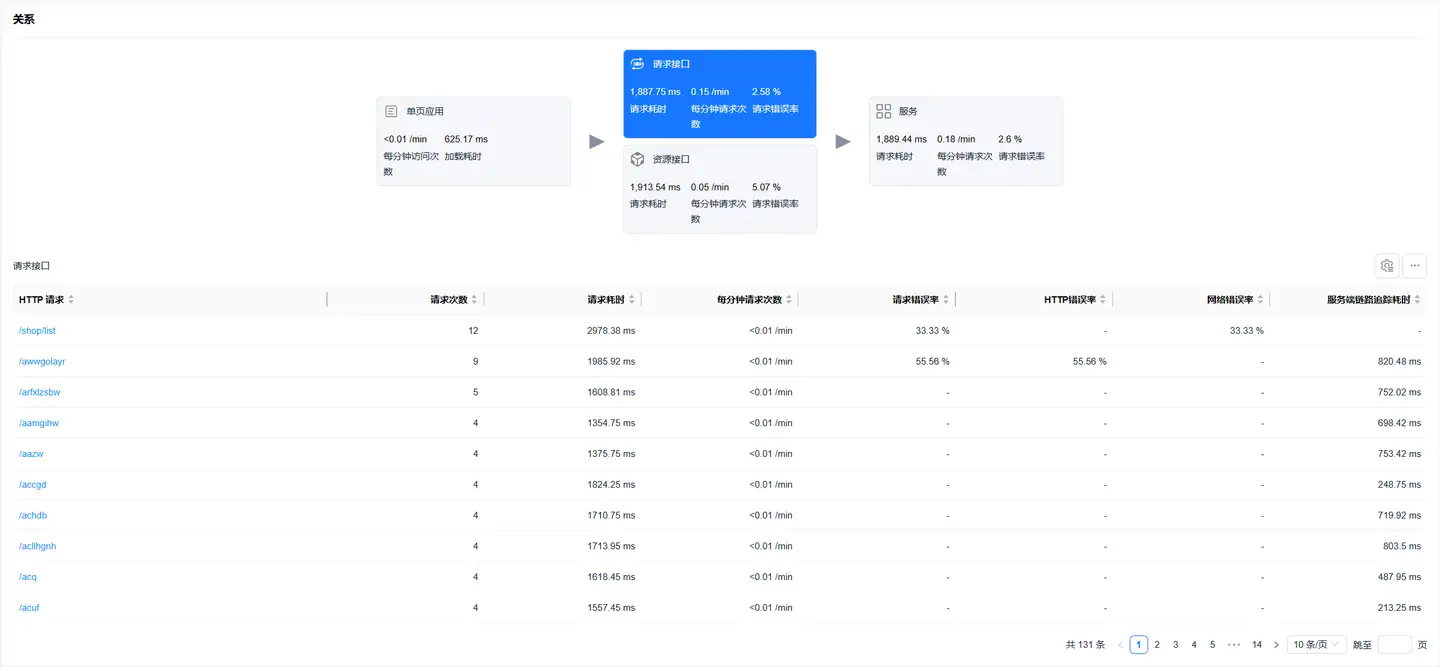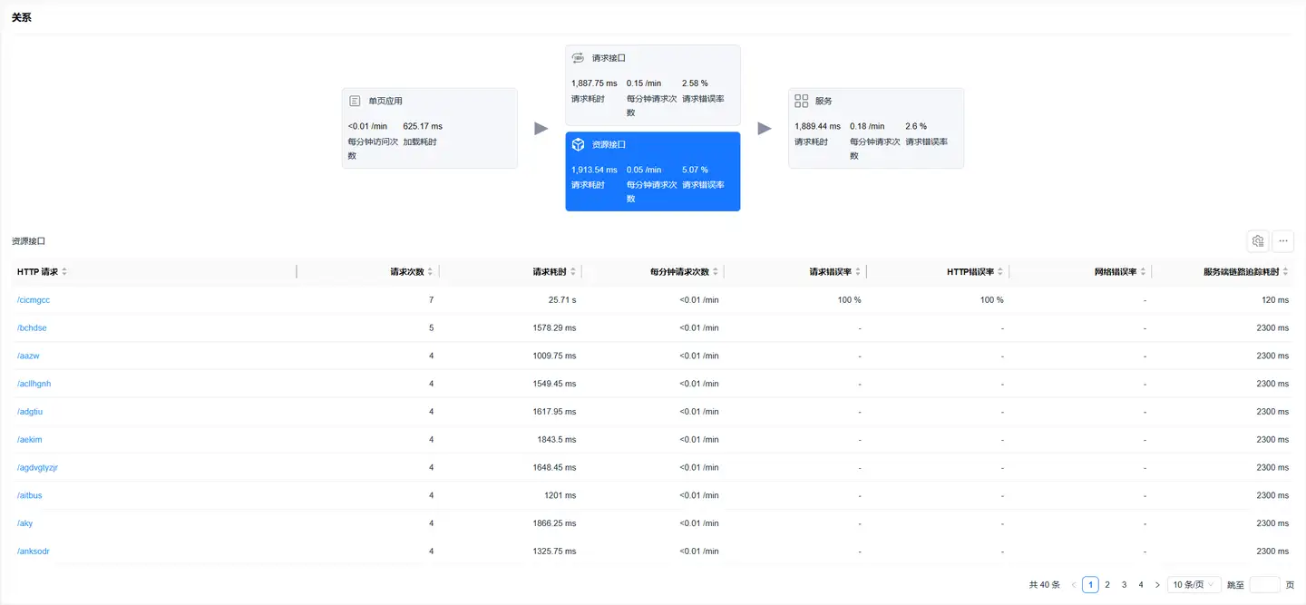 选中资源接口卡片,底部展示资源请求数据列表,列表展示数据包括: