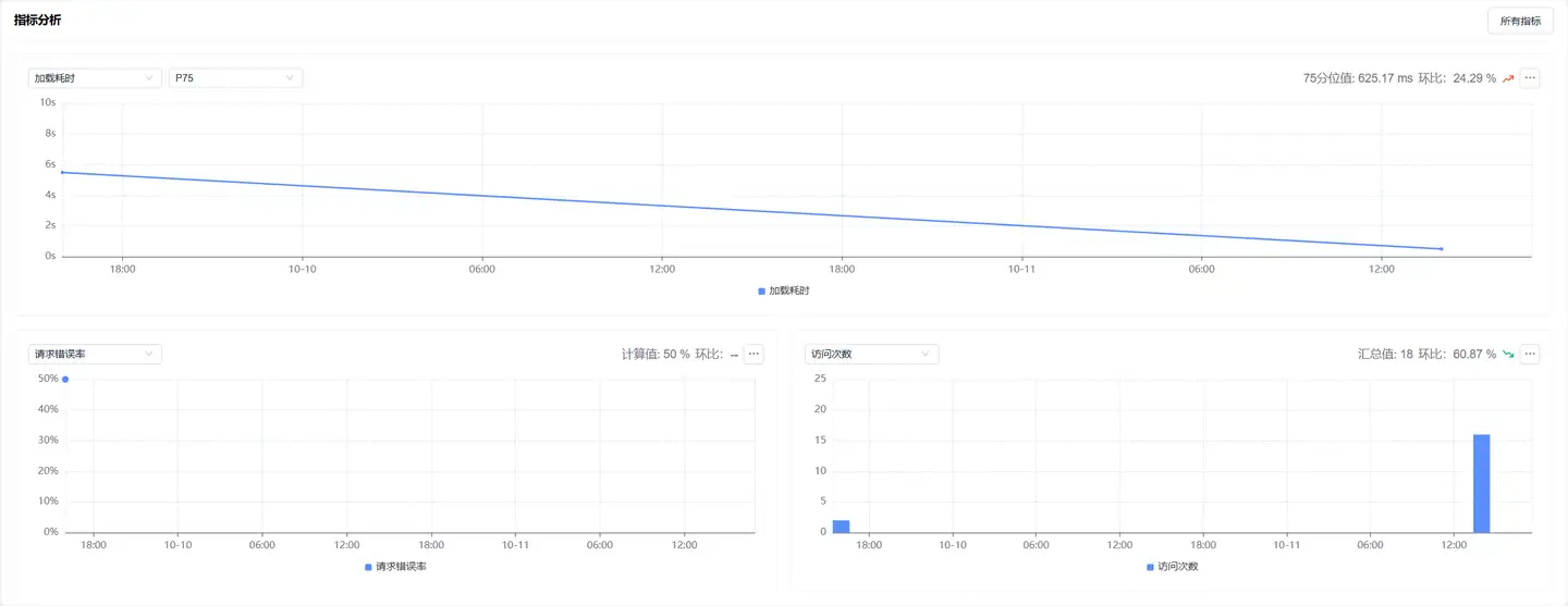 路由分析提供单页 应用中所有路由加载的性能分析数据,并可对每个路由的性能进行表现评价、趋势图和分位图分析、地域分析、汇总瀑布图分析和页面详情追踪。