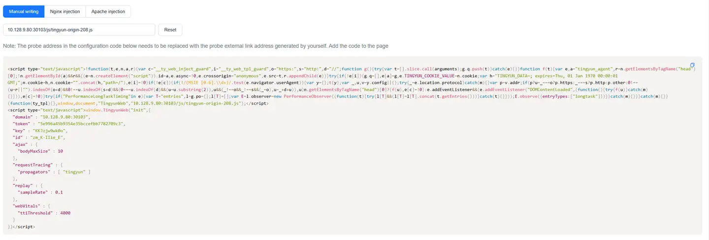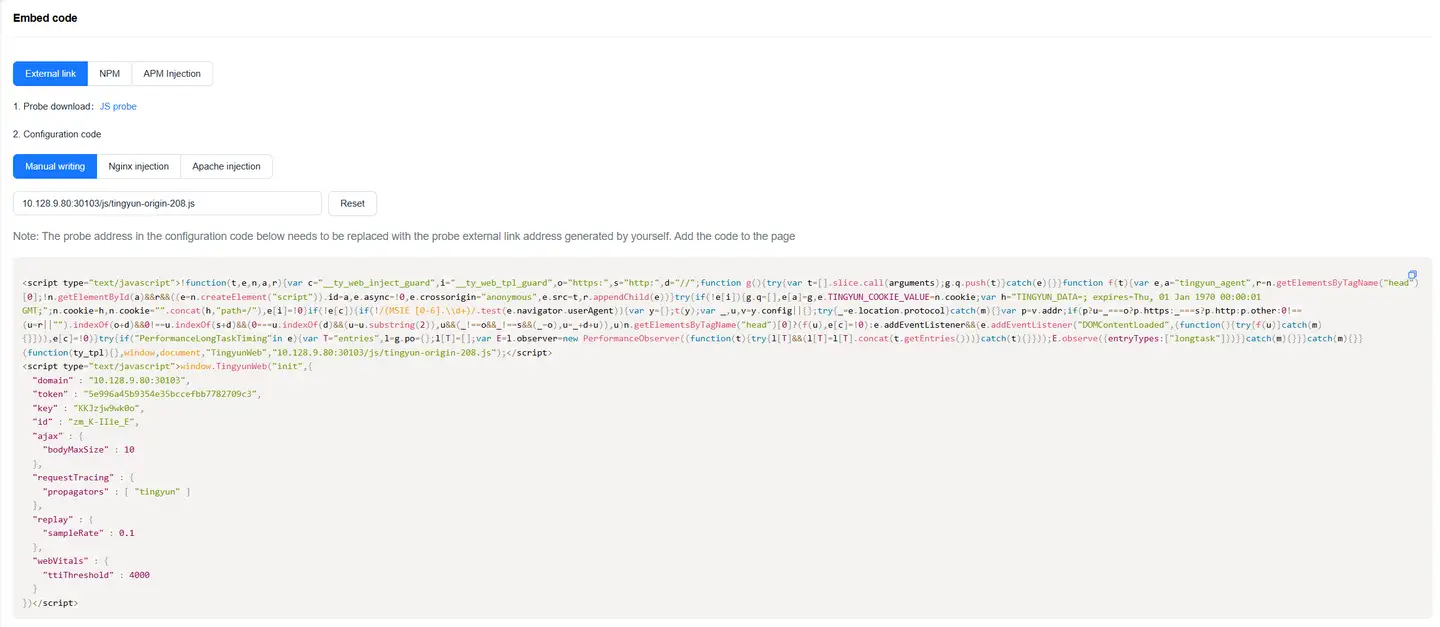 If using "JS external link" method to use probe, directly use the generated JS external link address.
