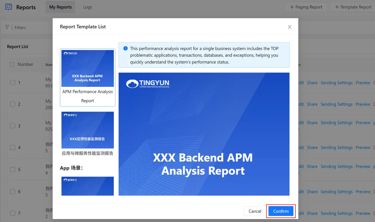 Select a template and click the "Confirm" button.