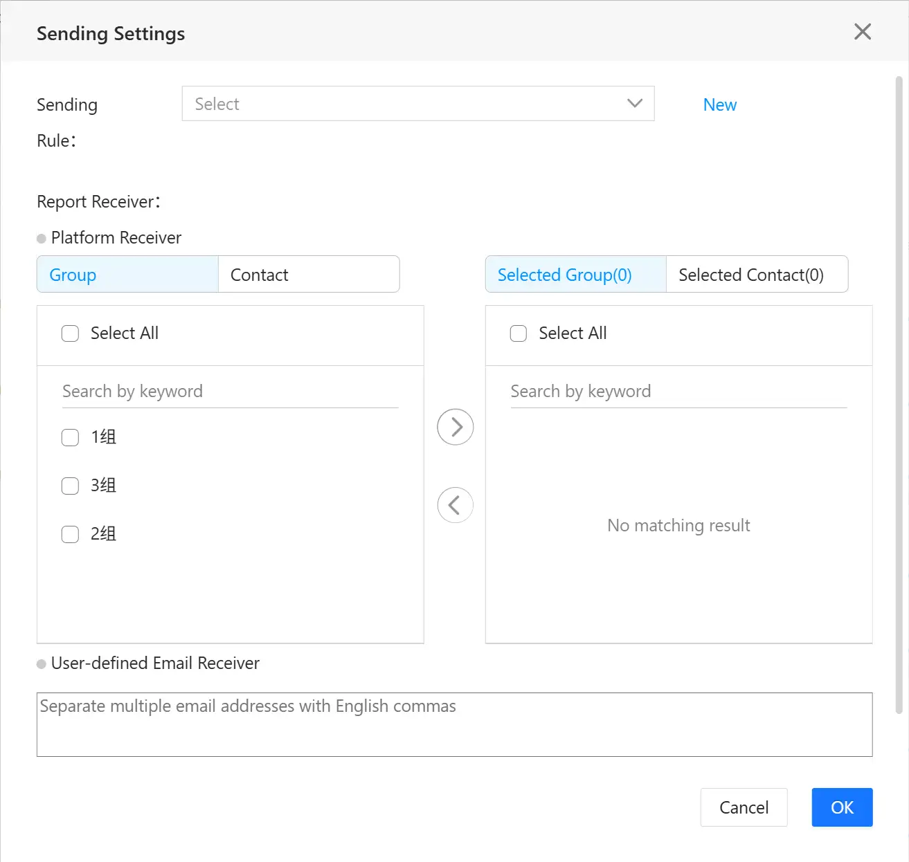 - Platform Recipients: Send the report to the email addresses of recipients already configured in the platform. To configure recipients, please do so in "User Center" > "Push Configuration".