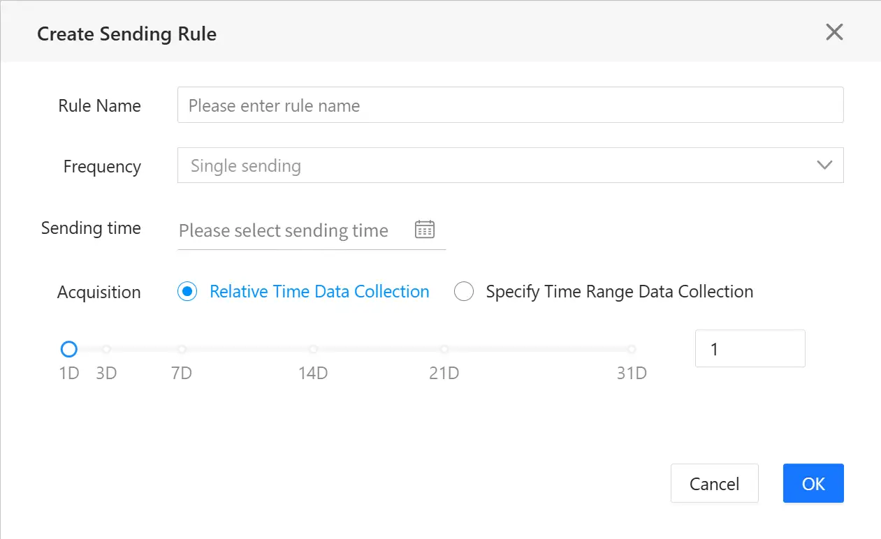 - Relative Time Data Collection: The data collection time is N calendar days prior to the report sending time.