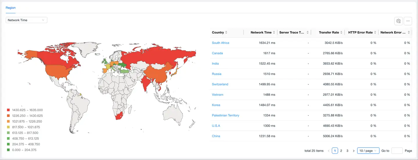 Typical Scenario: Users in a certain province report slow access → Geographic analysis finds that the network latency in that province is significantly higher than other regions → Check CDN node coverage in that region → Adjust CDN strategy or add nodes.