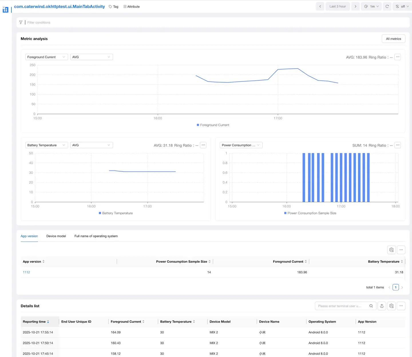Note: Energy consumption analysis only supports Android.