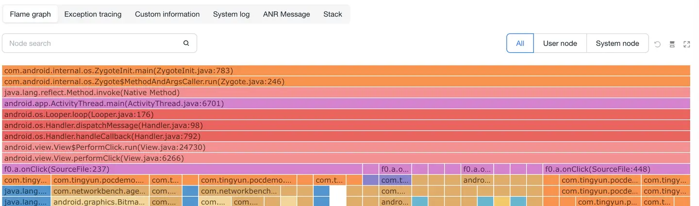 - Node search: Support searching and highlighting call stacks