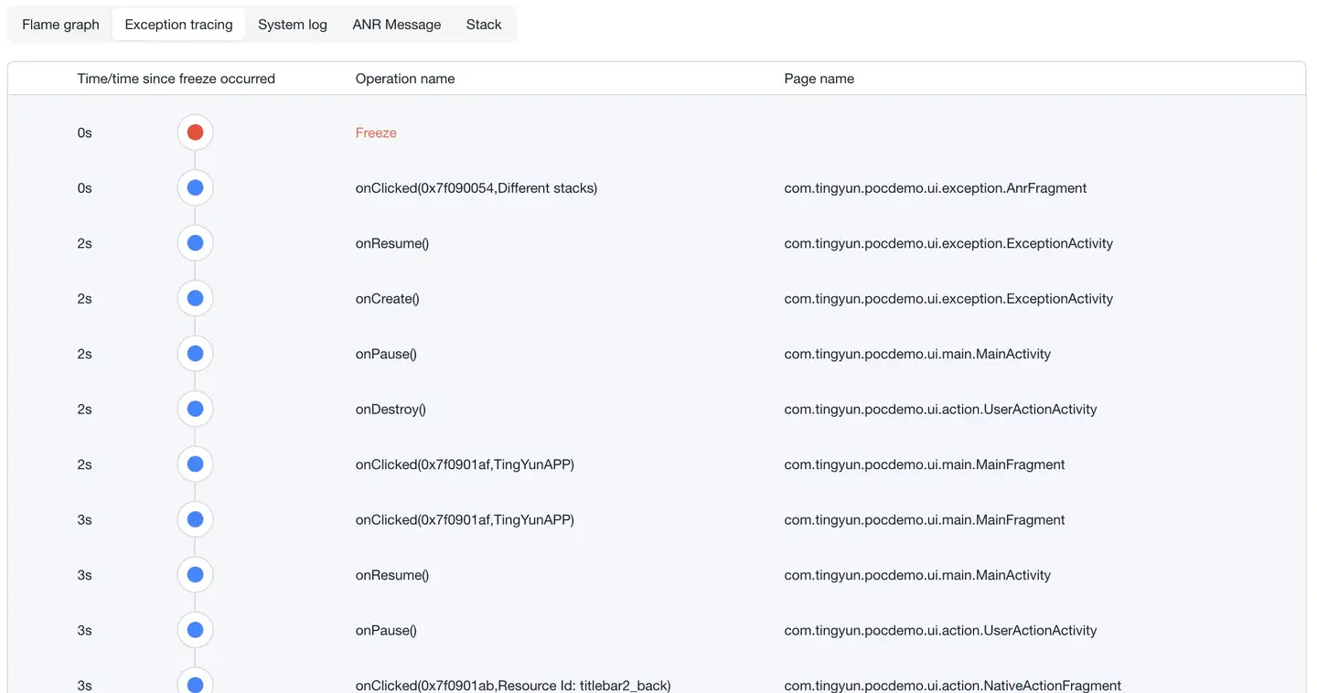 Displays the stack information of all threads when ANR occurs, helping to locate the root cause of the problem.