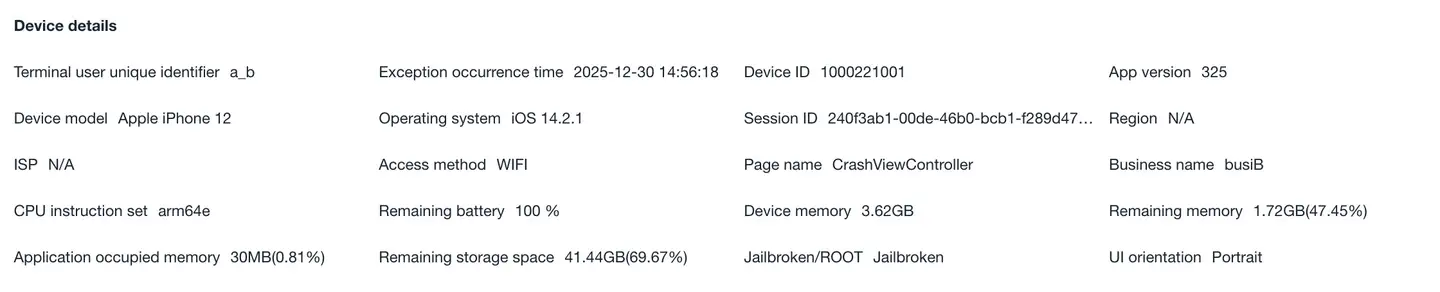 Addition method: NBSAppAgent.setUserCrashMessage(String key,String value);