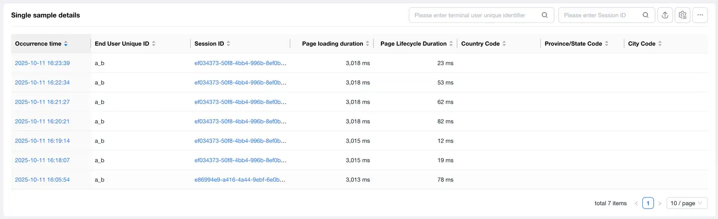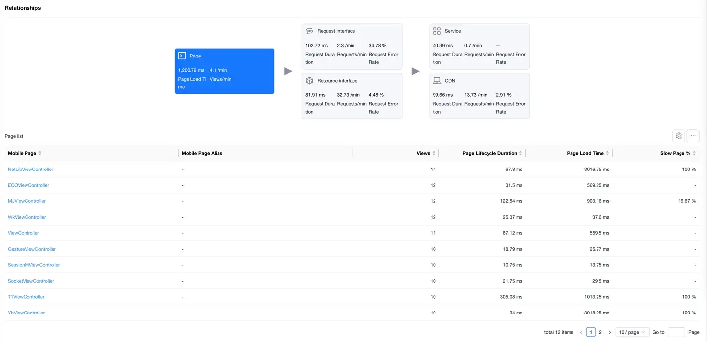 The page analysis function can monitor the online application page loading performance in real-time, helping developers quickly locate problems and optimize user experience.