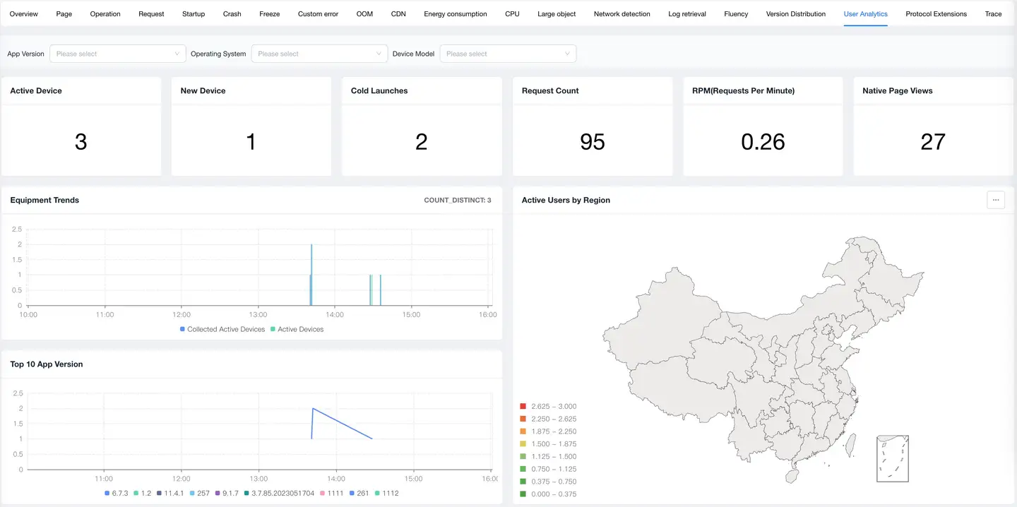 - User Profile Analysis: Understand user device, system, and geographic distribution to optimize product adaptation