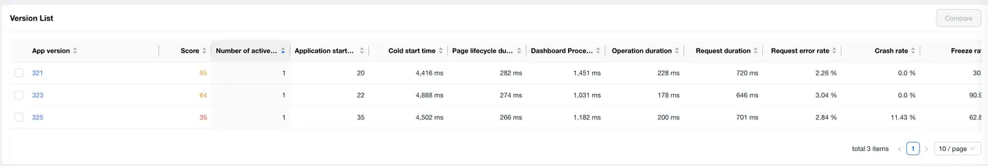 - Performance Degradation Warning: Version comparison quickly identifies performance decline to avoid user experience damage