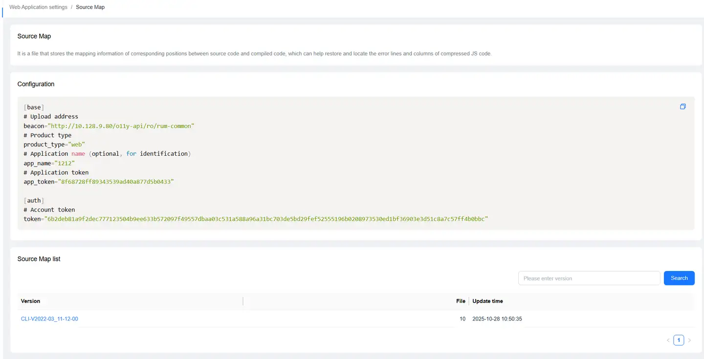 Source Map upload supports two methods: CLI and Webpack plugin. For specific instructions, please refer to Source Map.