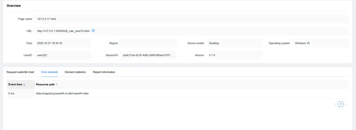 Click on timeStamp in the details list to enter the Trace Detail Tracking page, which displays request information during page loading.
